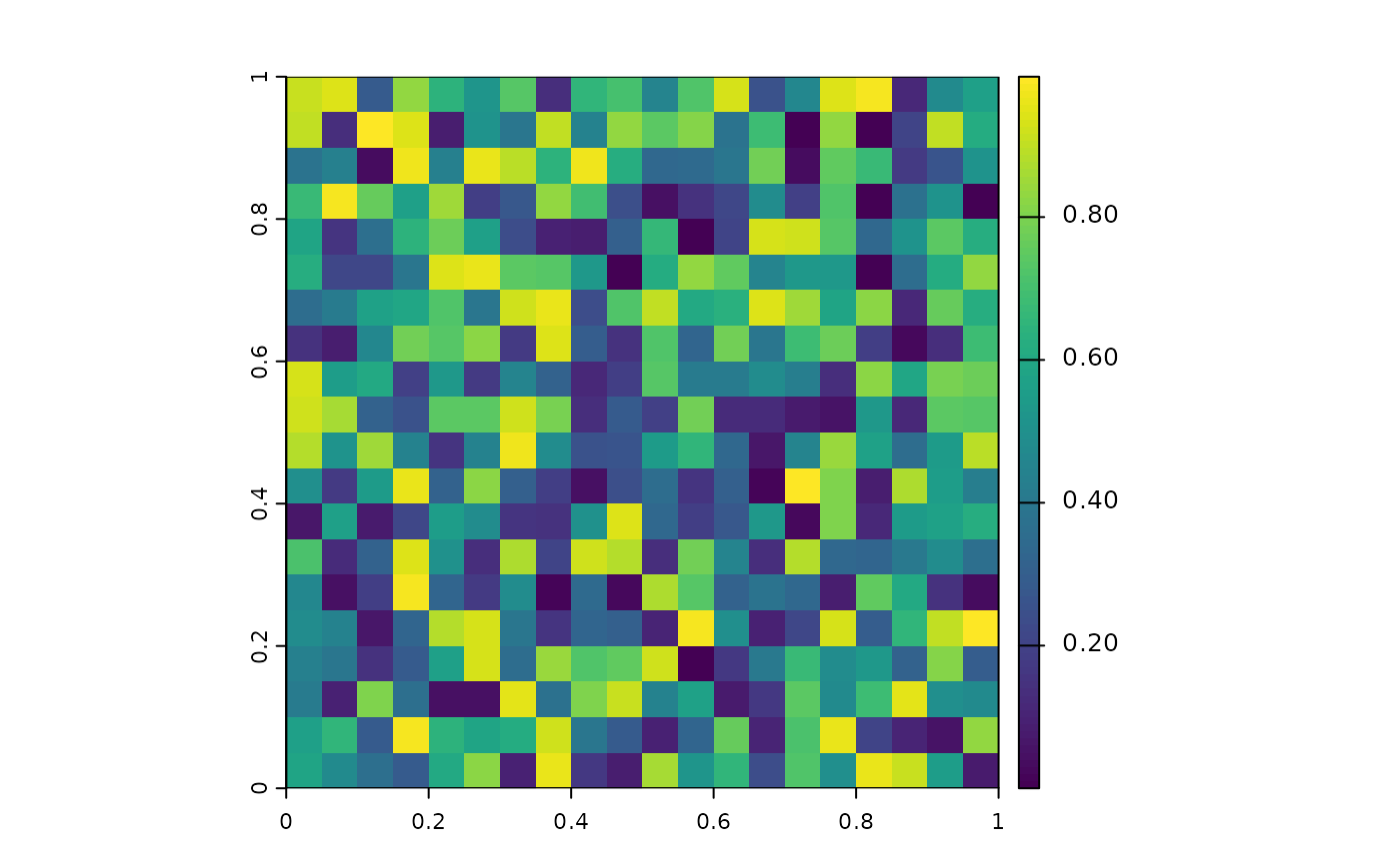 r <- rast(ncol = 20, nrow = 20, xmin = 0, xmax = 1, ymin = 0, ymax = 1, vals = runif(400))